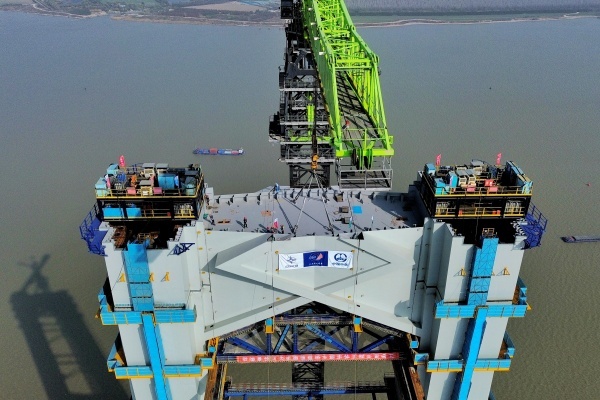 张靖皋长江大桥南航道桥南主塔封顶(央广网发 中交二航局供图)