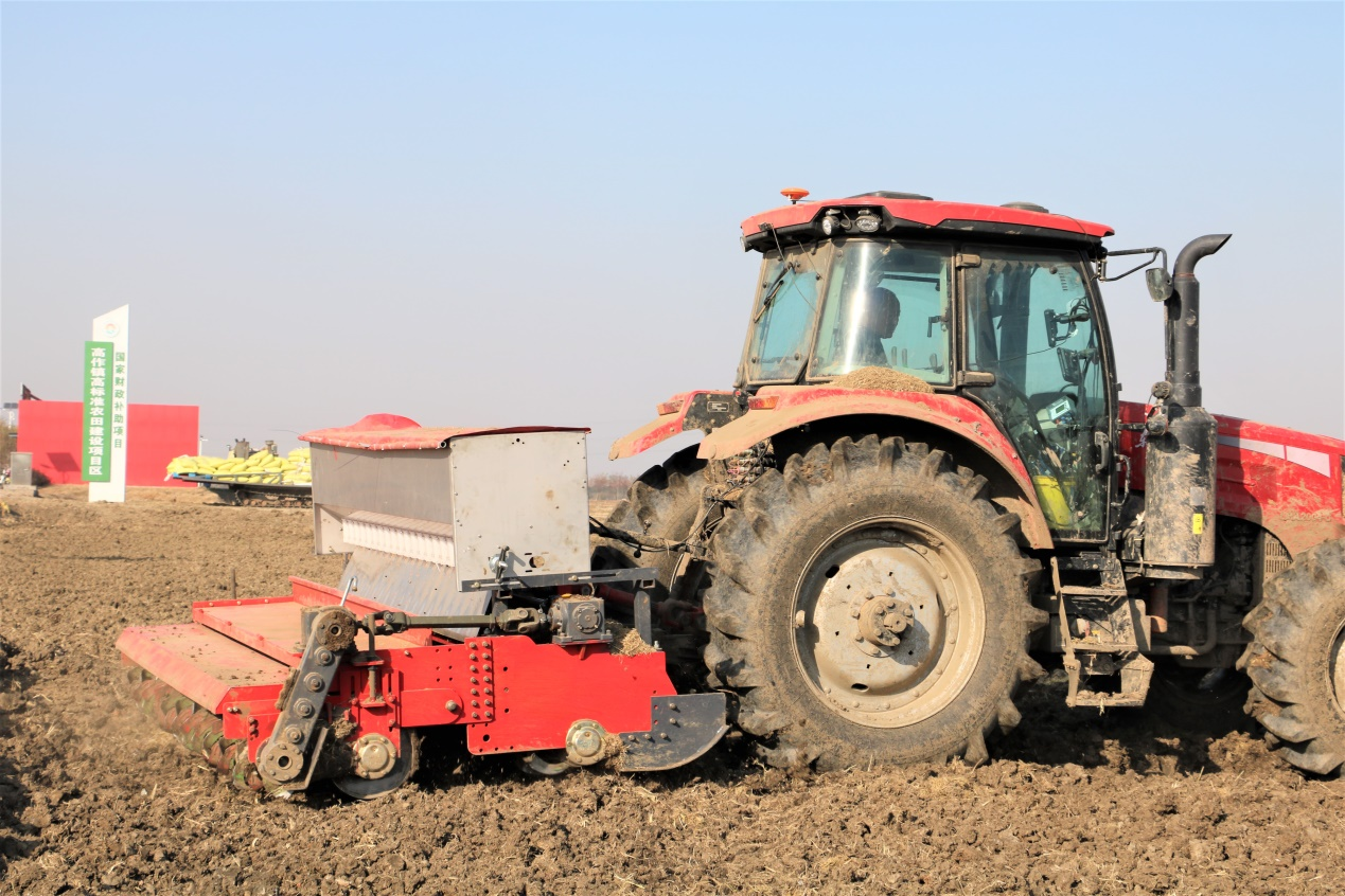 高作镇抢抓农时,科学调度农机资源,对收割完毕的田块实施“一条龙”机械化作业,从抛肥、旋耕到播种、覆土、镇压、开沟,全程机械化操作一气呵成。据测算,单台机械日均播种面积可达130亩左右,不仅效率显著提升,更实现了播种均匀、出苗整齐的效果。