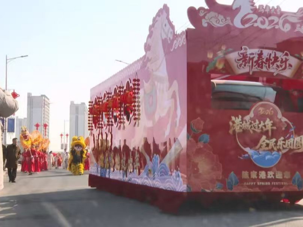 大年初一,陈家港镇民俗游街活动成为街头最亮眼的风景。上午8点58分,喜庆花车领队,舞龙舞狮、迎亲花轿、秧歌、小龙船等民俗队伍从陈家港镇中心小学出发,一路展演至港城记忆。“我带孩子来感受一下传统年味,民俗踩街很有特色,既热闹又有年味。”市民刘秀秀笑着说道。雄狮腾跃翻滚、金龙蜿蜒游走,迎亲花轿诙谐有趣,数十个民俗活动让市民目不暇接。“这场踩街表演,让我们在家门口感受千年民俗的魅力,非常有意义。”市民袁从富赞叹道。近两个小时的巡游,将传统年味演绎得淋漓尽致,现场喝彩声不断。