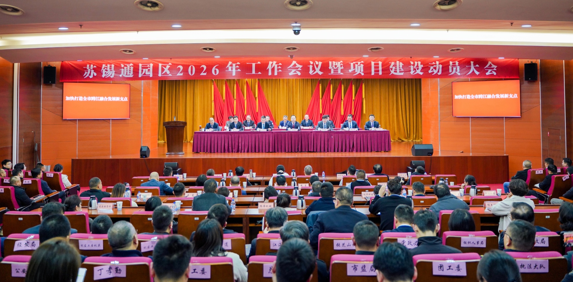 1月16日,南通苏锡通园区2026年工作会议暨项目建设动员大会召开,回顾总结2025年及“十四五”时期工作,谋划“十五五”时期目标任务,研究部署2026年工作,动员园区上下凝心聚力、接续奋斗,为全市高质量发展新的“沧桑巨变”争作更大贡献,全力推动中国式现代化苏锡通新实践取得新进展。