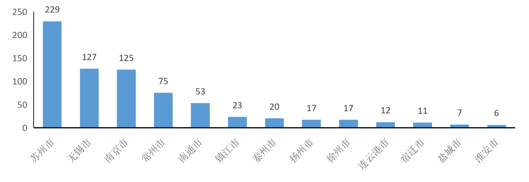 江苏上市公司按地域分布情况(央广网发 江苏省上市公司协会制图)