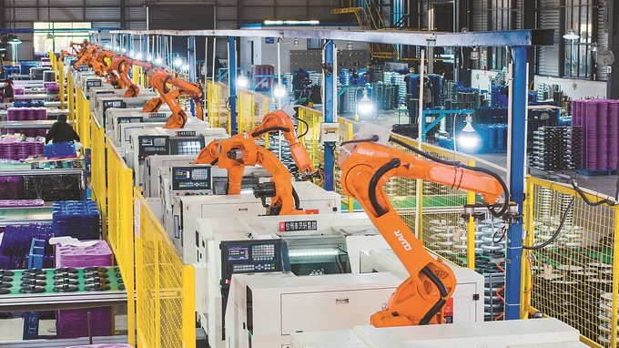 12月3日,金湖县工业园区内,一家企业的机器人正在生产线上忙碌。该企业通过大规模引进国际先进的自动化生产线,不仅实现了生产效率和产品精度的大幅跃升,更在节能降耗、精益生产方面取得显著成效,为当地制造业树立了产业升级的新标杆。(冀春阳 陈义宝)