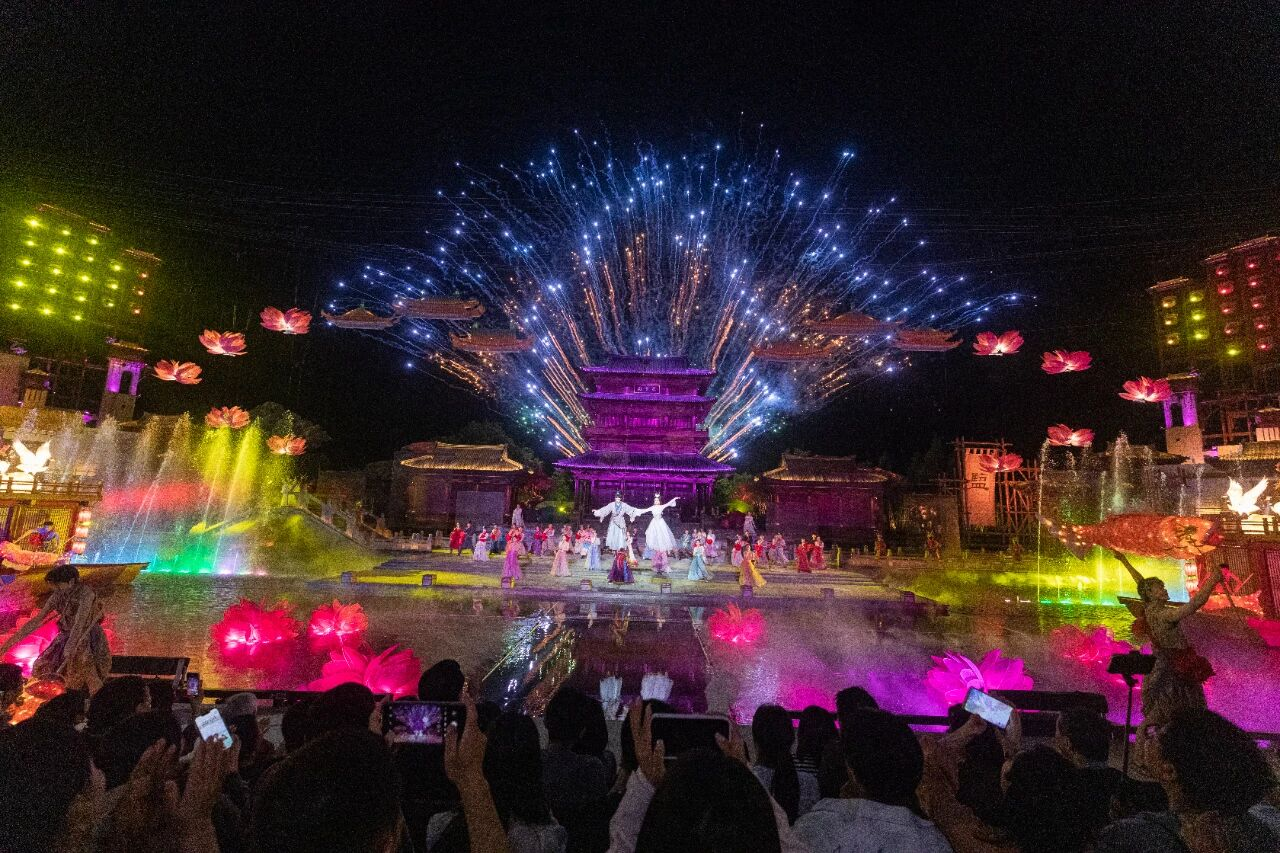 当夜幕降临,《天仙缘》实景演出以董永与七仙女的爱情传说为蓝本,用歌舞、杂技与光影特效,演绎一段跨越仙凡的浪漫传奇;《寻仙缘》沉浸夜游则邀游客沿仙缘步道漫步,在光影幻境中邂逅仙女、探寻仙踪,仿佛闯入神话世界。