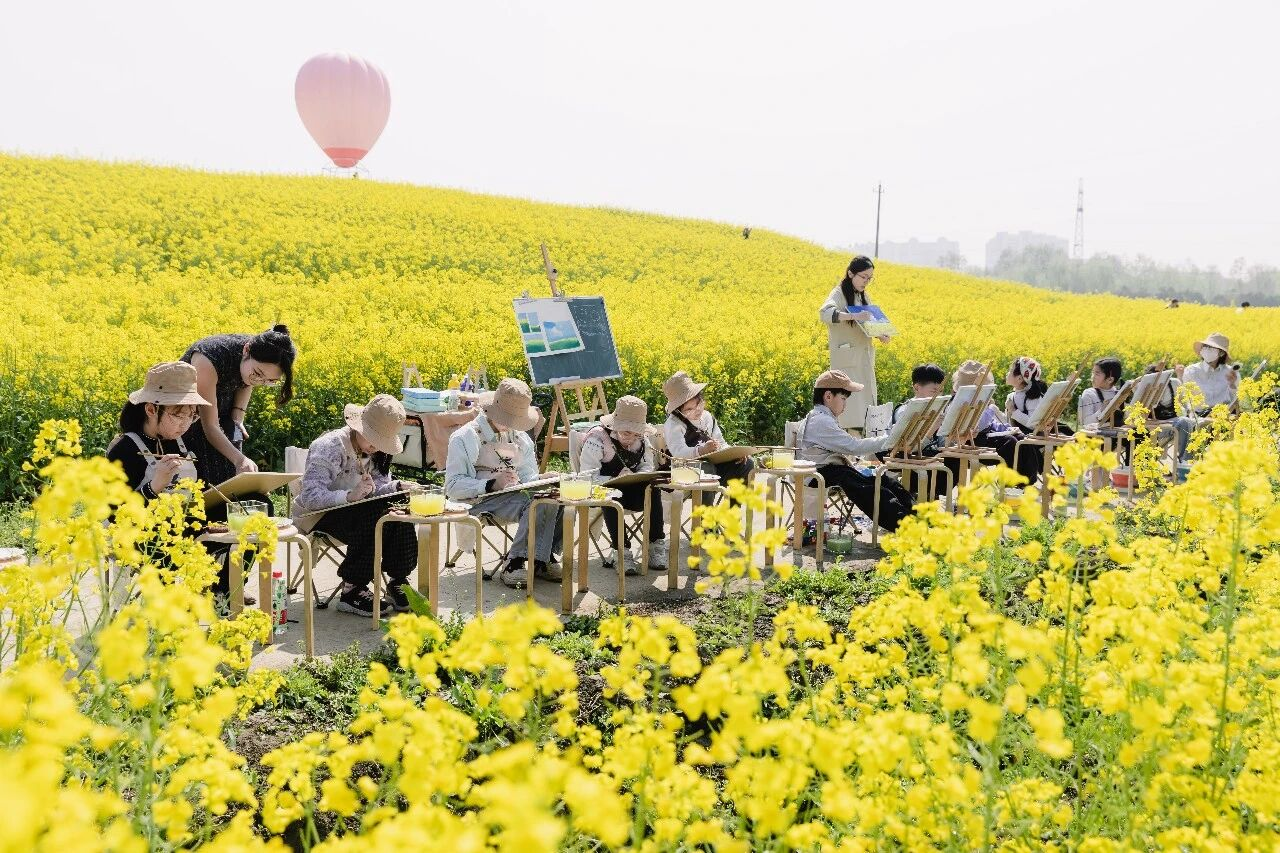 “我想用画笔把这片美景画下来,也想让更多人看到西溪的春天。”“在花田里画画特别有意思,既能欣赏风景,又能发挥想象,这是和教室不一样的课堂。”站在“西溪花山”上往下看,整片整片的油菜花开得正欢,满眼皆是流动的金黄。花田步道上,小画家们铺展画纸,用画笔勾勒花海风光,描绘心中的春日西溪。