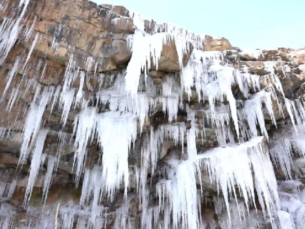 央广网连云港1月23日消息(记者李婕 通讯员王瑞麟)受持续强降温天气影响,连云港市海州区锦屏山托山涧近日出现罕见的冰瀑景观。往日奔流的山涧瀑布在凛冽严寒中凝结成冰,宛若一条皎洁的玉带悬于崖壁之间,构成一幅壮丽浑然的冬日画卷。