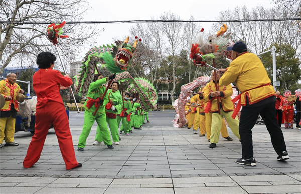 室外广场上舞龙腾跃翻飞(顾原菘 摄)